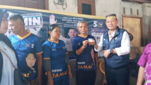 Selain itu Daenk Jamal juga membagikan kartu Daenk Jamal peduli card yang di berikan secara simbolis kepada perwakilan tokoh masyarakat Kampung Walang.
