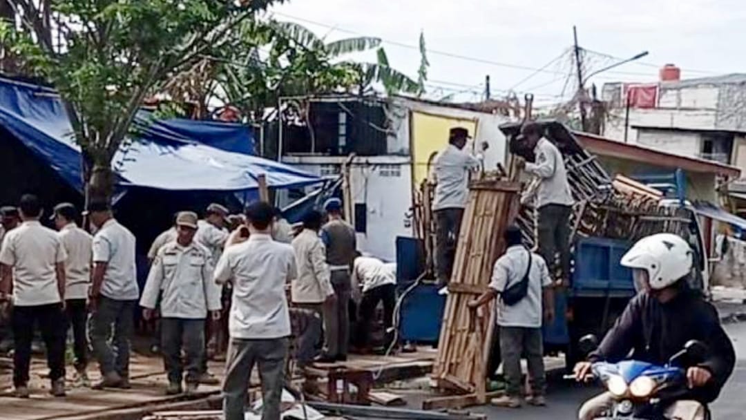 Dijelaskan Subhan, empat lapak pedagang buah yang ditertibkan terbuat dari bambu dan kayu.