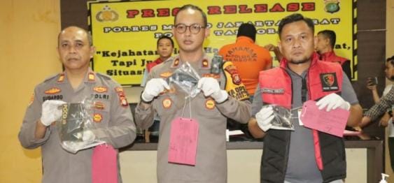 Kapolsek Tambora Polres Metro Jakarta Barat Kompol Donny Agung Harvida didampingi Kanit reskrim Akp Rahmat Wibowo menunjukkan barang bukti pelaku