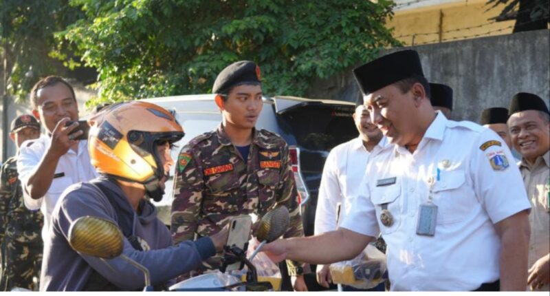 Kegiatan Safari Ramadan yang diinisiasi PCNU Jakarta Barat bersama PWNU DKI Jakarta diisi dengan pembagian takjil. Wali Kota Jakarta Barat, Uus Kuswanto bersama Ketua PWNU DKI Jakarta, KH Syamsul Maarif dan Ketua PCNU Jakbar, H. Agus Salim membagi-bagikan takjil kepada pengguna jalan yang melintas di depan kantor PCNU Jakarta Barat.