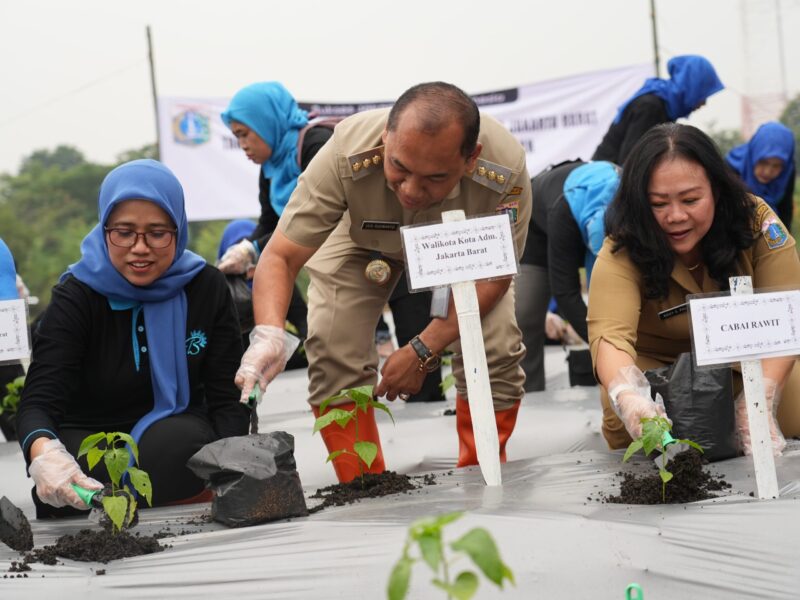 JAKARTA, okjakarta.com – Wali Kota Jakarta Barat, Uus Kuswanto bersama jajaran, TP PKK, dan kelompok pertanian (Poktan) melakukan tanam cabai pada lahan aset milik Pemerintah Provinsi DKI Jakarta di Komplek Damkar Joglo, Kelurahan Joglo, Kecamatan Kembangan, Jakarta Barat, Senin (1/4/2024) sore.