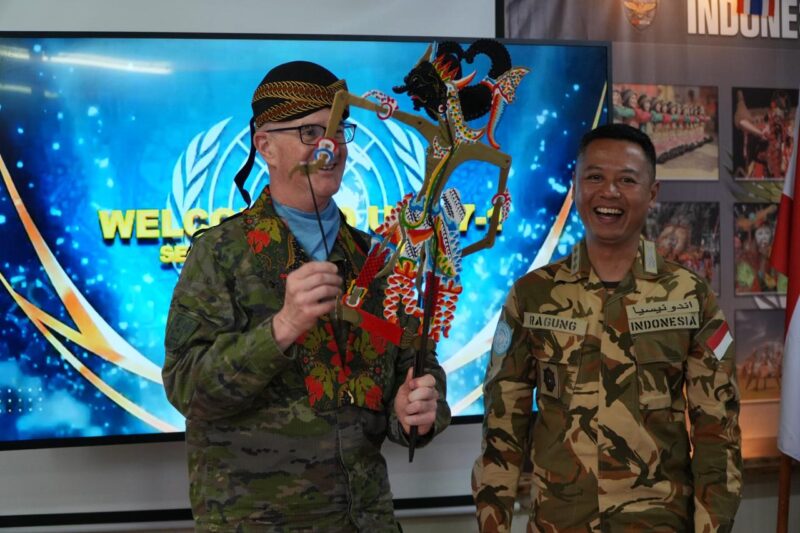 “Kami mengenalkan budaya Indonesia kepada Dunia, dengan mengenalkan wayang kulit dan souvenir blangkon serta selendang batik, kemudian tarian maupun makanan khas Indonesia yang kami sajikan”, terang Kolonel Ragung.