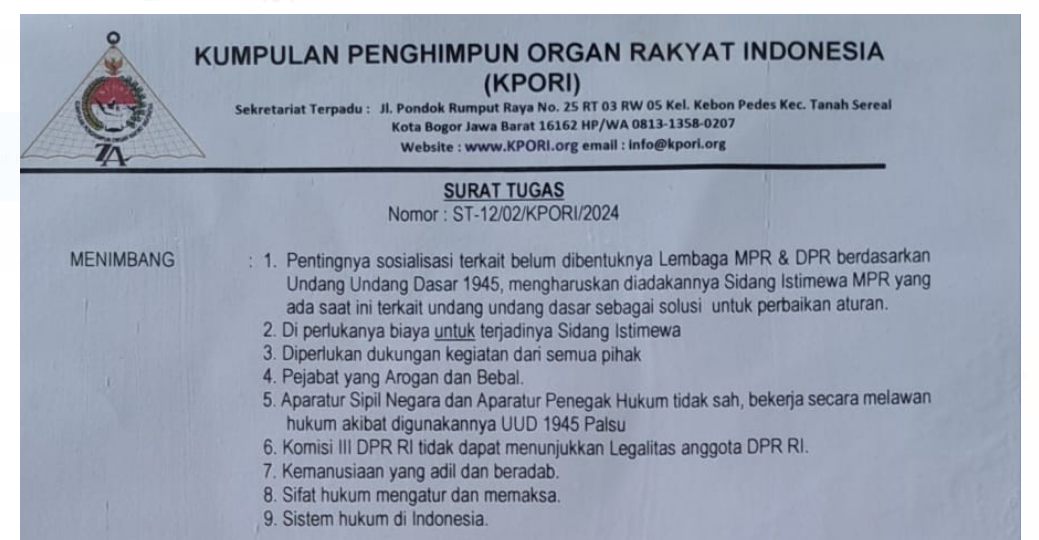Lalu apa isi surat tugas KPORI yang diberikan kepada anggotanya?