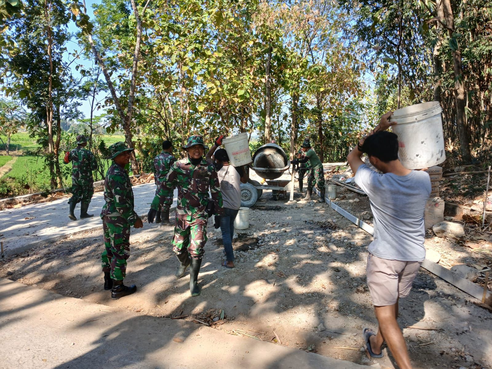 “Kekompakan dan semangat Anggota dan Masyarakat yang tergabung dalam Satgas TMMD Sengkuyung Tahap III Tahun 2024 Kodim 0724/Boyolali terlihat jelas ketika mengerjakan sasaran fisik baik pembuatan talud jalan dan pengecoran rabat beton di Desa catur walaupun panas terik matahari seperti membakar kulit, hal ini merupakan wujud Kemanunggalan TNI dengan Rakyat dalam mensukseskan pembangunan di wilayah demi kesejahteraan masyarakat, “tutupnya.