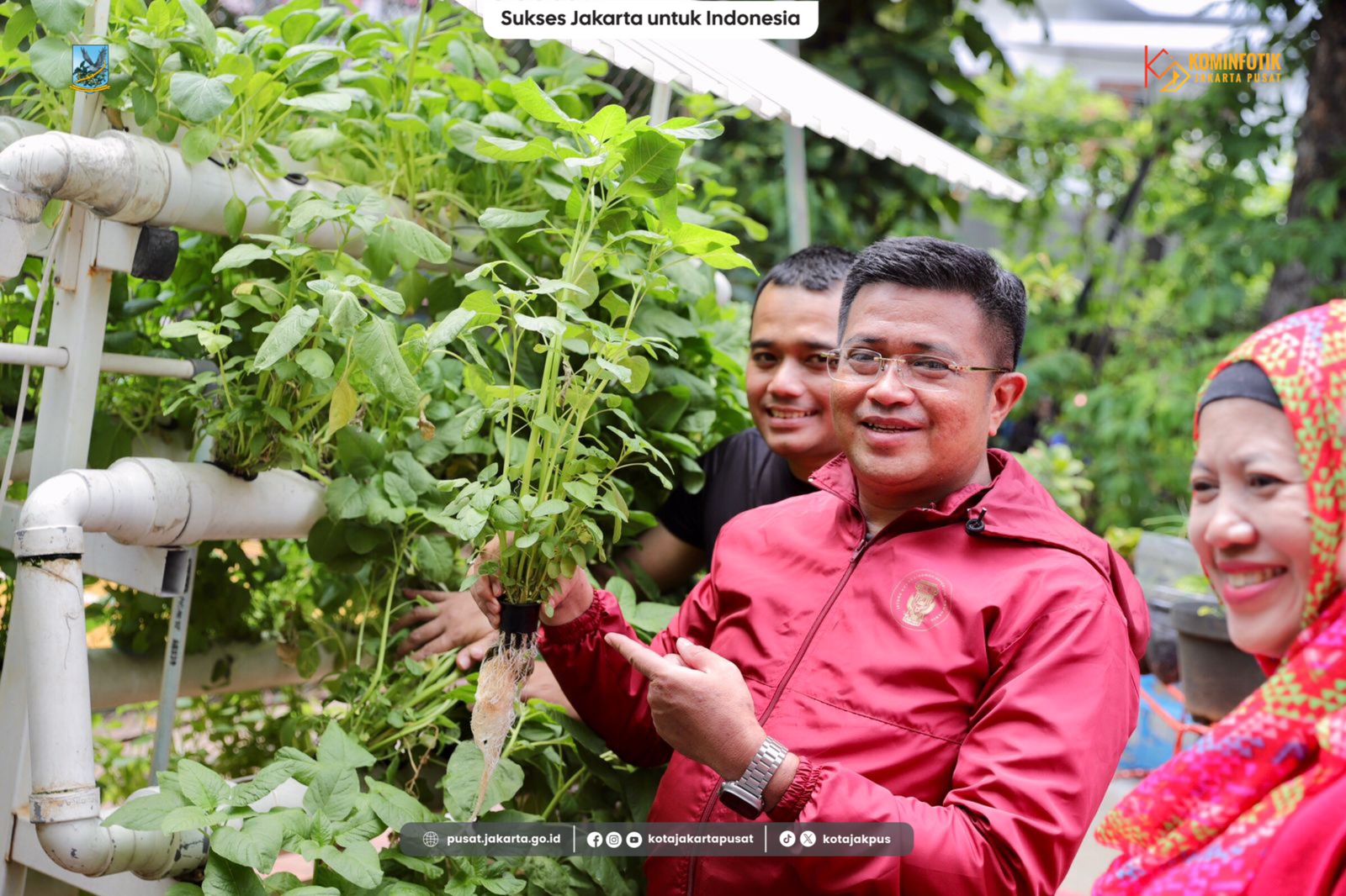 Camat Gambir Panen Bayam dan Sawi di RPTRA Tanah Abang 3