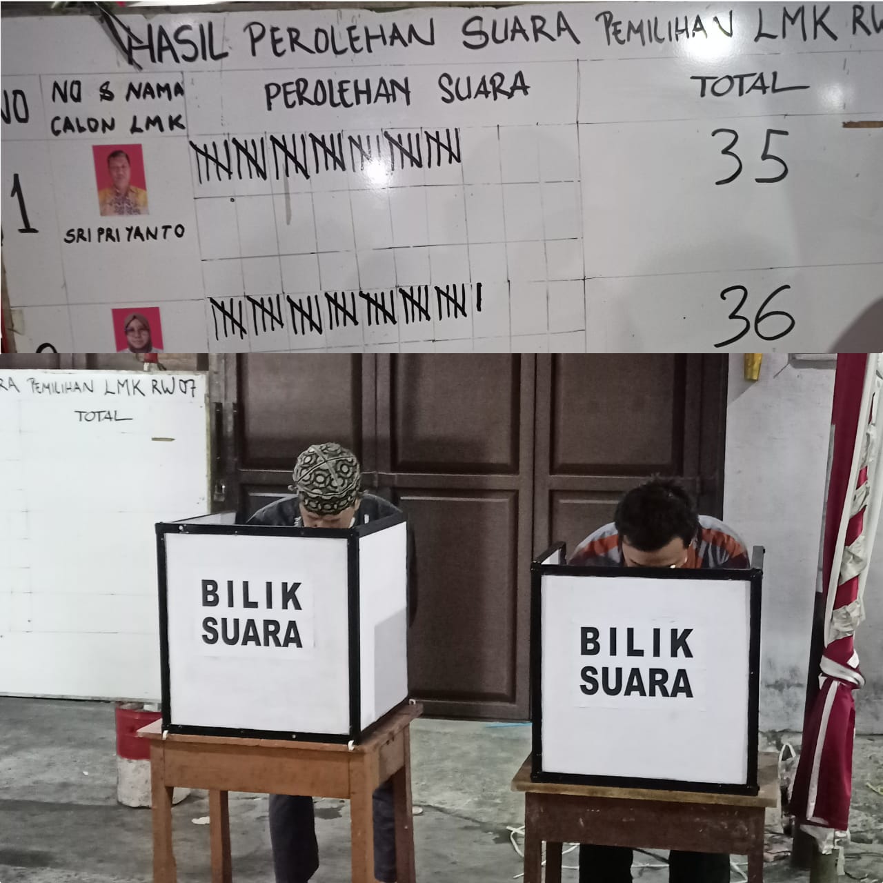 Pemilihan yang berlangsung di sekretariat RW 07 Sabtu 26 Oktober 2024 malam (20.00 WIB), wanita yang akrab disapa Bunda menang selisih satu suara dengan total 36 suara.