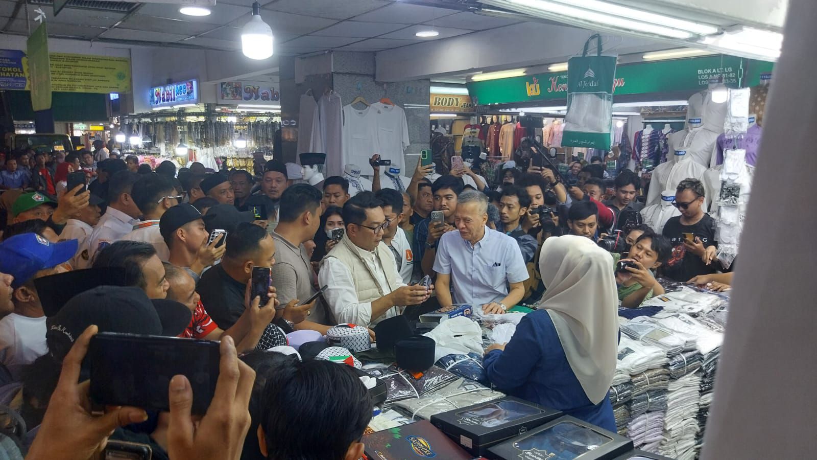 JAKARTA – Calon Gubernur nomor urut 1 Ridwan Kamil (RK) blusukan di kawasan Pasar Tanah Abang, Jakarta Pusat, Senin (4/11/24)