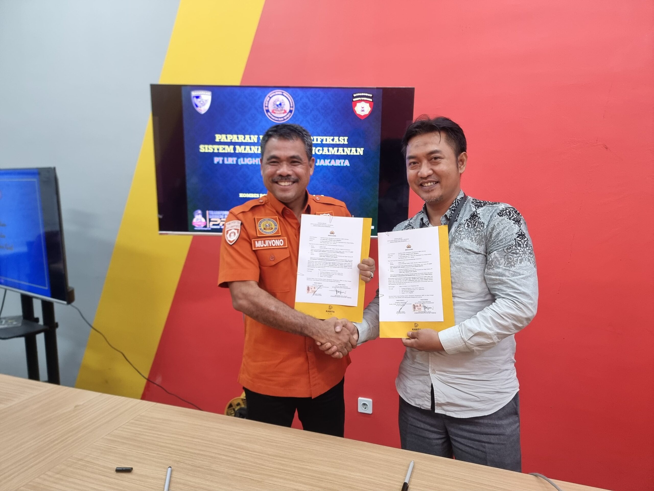 Untuk diketahui bahwa dalam kegiatan ini telah dilakukan penandatangan dan penyerahan berita acara klarifikasi sistem manajemen pengamanan (SMP) PT LRT Jakarta.