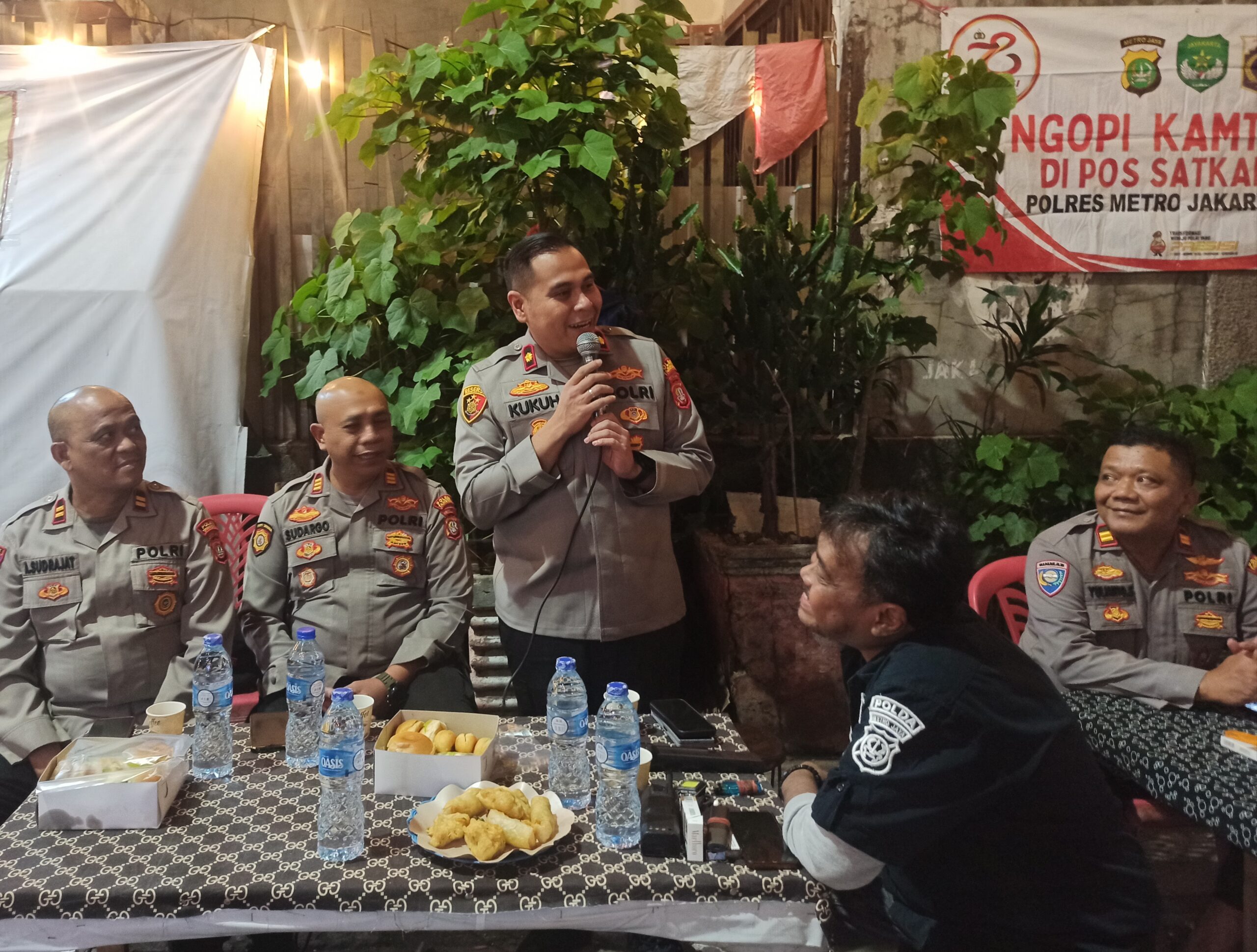 Kegiatan ngopi bareng warga tersebut Kapolsek Metro Tambora Jakarta Barat Kompol M. Kukuh Islami didampingi Waka Kapolsek Metro Tambora AKP Sudargo, Kanit Binmas lPTU Agus Sudrajat, Panit Bimas Yulianto dan Bimas Duri Utara Indra Kurniawan.