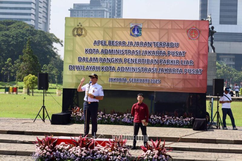 JAKARTA – Pemerintah Kota Administrasi Jakarta Pusat menggelar apel Bulan Tertib Parkir di kawasan Silang Monas, Gambir. Rencananya, mulai hari ini hingga 12 Maret akan dilakukan penertiban parkir liar oleh petugas gabungan secara masif di delapan kecamatan se-Jakarta Pusat.