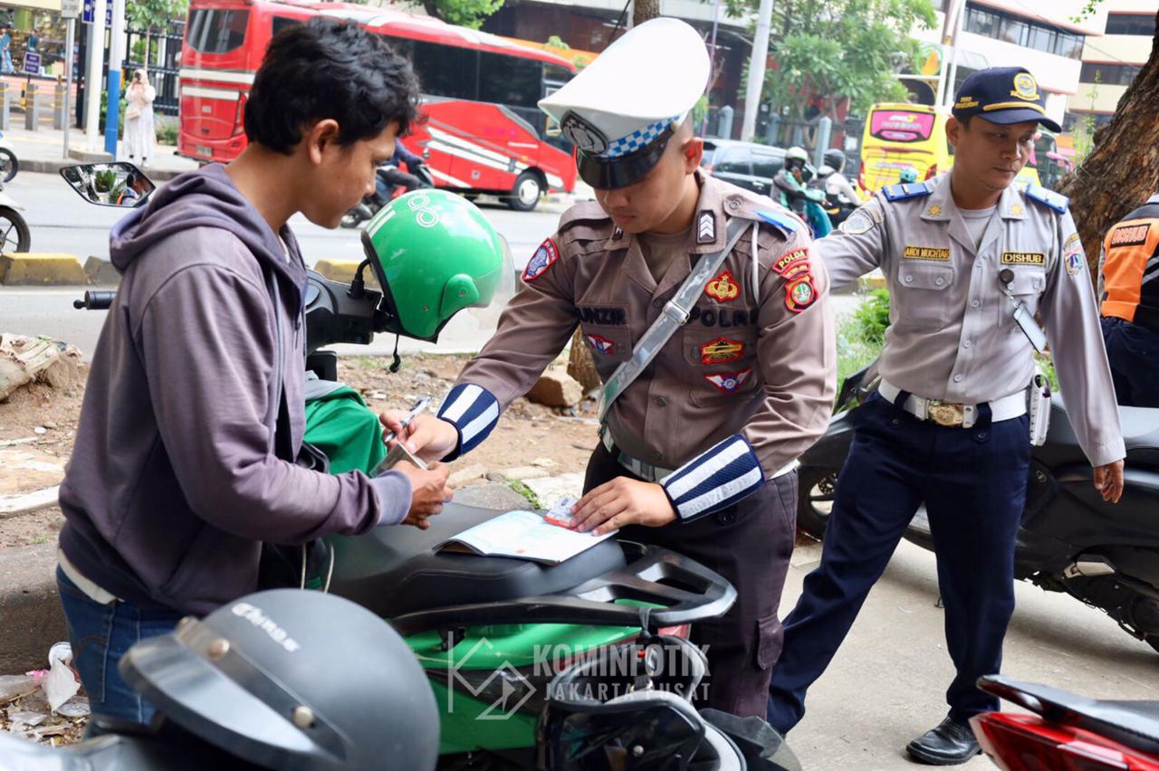 Foto: petugas bersama mengemudi yang kena razia parkir liar motor nya