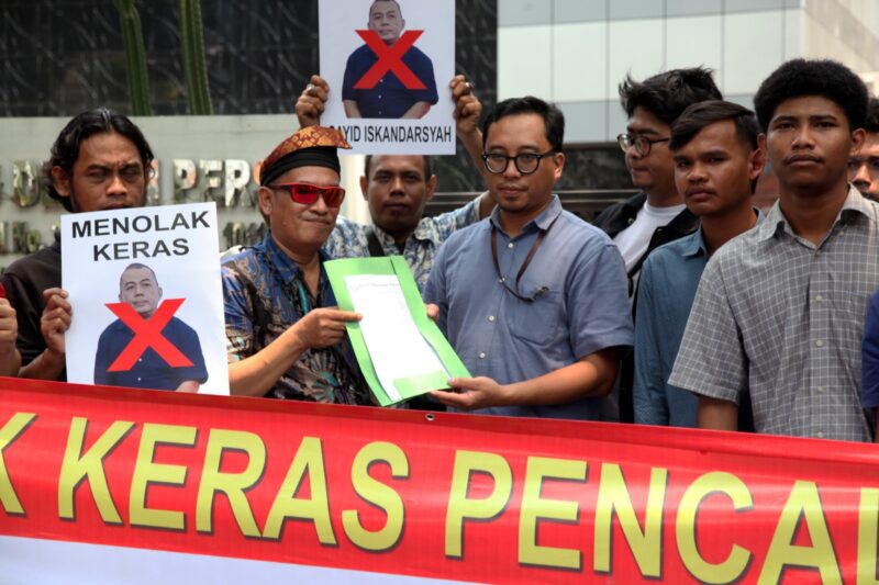 “Kami menolak pencalonan Sayid Iskandarsyah karena rekam jejaknya bermasalah dan dapat mencoreng kredibilitas Dewan Pers,” ujar salah satu pimpinan aksi dari atas pagar gedung Dewan Pers.