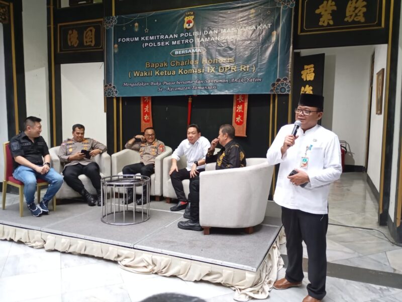 JAKARTA – FKPM (Forum Kemitraan Polisi dan Masyarakat) Kecamatan Taman Sari bersama Wakil Ketua Komisi IX DPR RI Charles Honoris adakan Buka Puasa dan Santunan untuk 100 anak yatim se-Kecamatan Taman Sari,