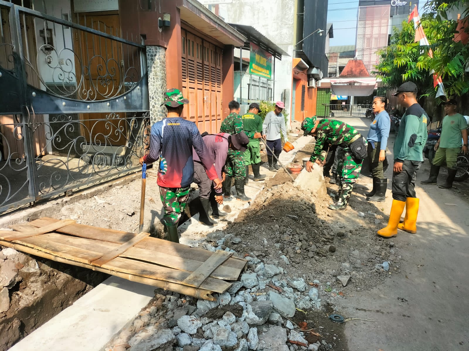 SURAKARTA – Danramil 03 Serengan Kodim 0735 Surakarta Kapten Cba Tri Rusman Prasetyo S.Sos dan anggota mengajak warga masyarakat dan Ormas kerja bakti dalam rangka Karya Bakti Daerah (KBD) Tahap II TA. 2025 Kodim 0735/Surakarta di Jalan Srimpi dan Golek RT. 02/06 Kelurahan Kemlayan Serengan Surakarta, Sabtu (26/04/2025).