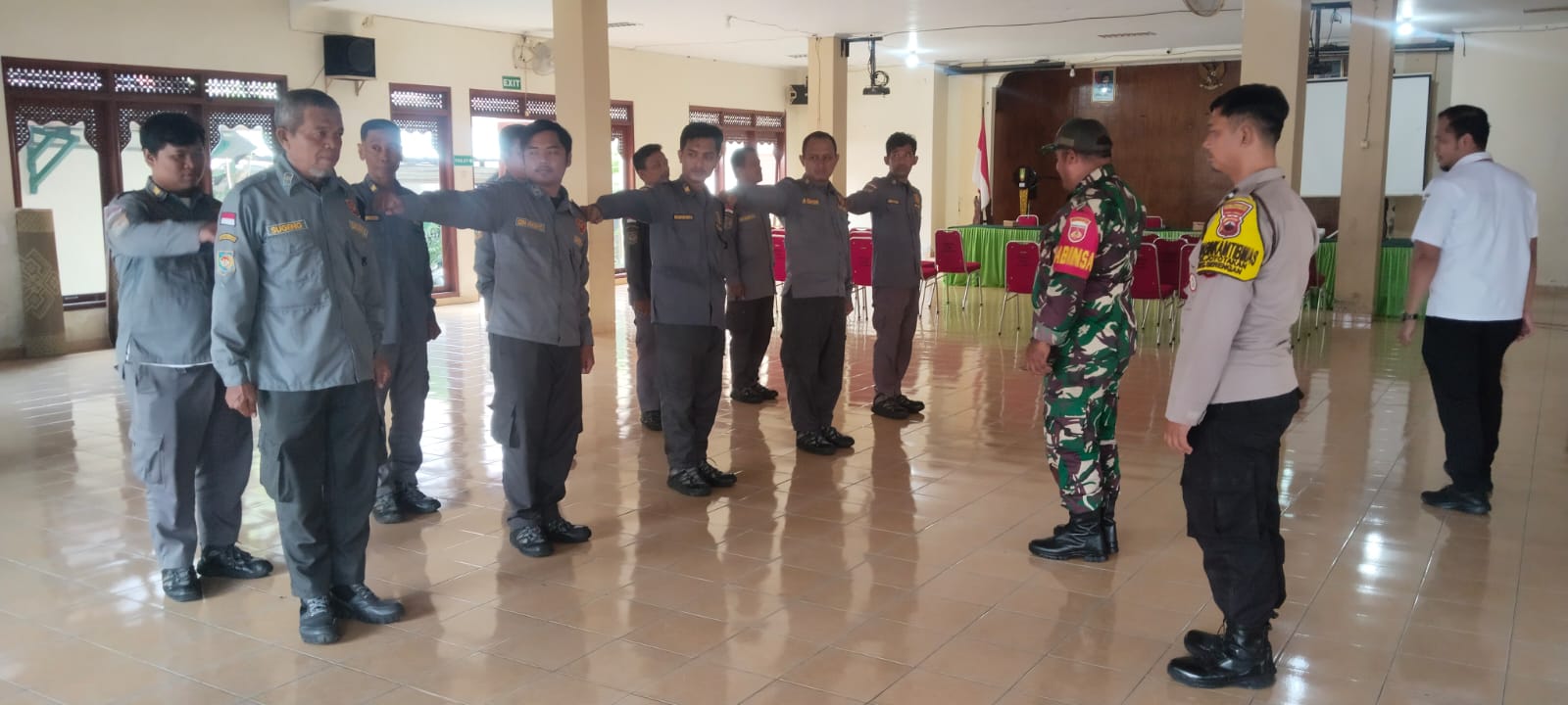 Surakarta – Dalam upaya meningkatkan kapasitas dan kedisiplinan anggota Satuan Perlindungan Masyarakat (Satlinmas), Babinsa Kelurahan Joyotakan Koramil 03/Serengan Kodim 0735/Surakarta, Serka Rumbawa, bersama Bhabinkamtibmas Aipda Fajar, memberikan pelatihan Peraturan Baris-Berbaris (PBB) di Aula Kelurahan Joyotakan, Kecamatan Serengan, Kota Surakarta, Rabu (11/6/2025).