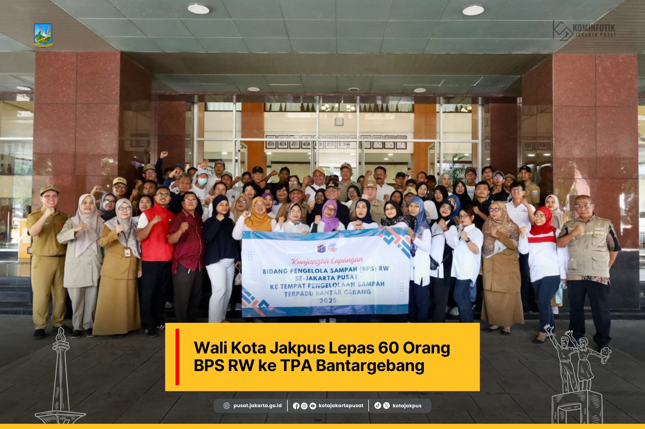JAKARTA — Pemerintah Kota Administrasi Jakarta Pusat memberangkatkan 60 orang pengurus Badan Pengelola Sampah (BPS) RW dari Kecamatan Gambir untuk meninjau langsung proses pengolahan sampah di Tempat Pengolahan Sampah Terpadu (TPST) Bantargebang, Bekasi, Senin (XX/6/2025). Kegiatan ini diharapkan dapat meningkatkan kapasitas pengelolaan sampah di tingkat komunitas.