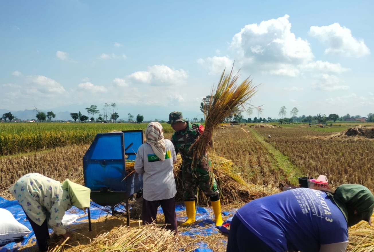 Semangat Gotong Royong, Babinsa Desa Wates Bantu Petani Panen Raya