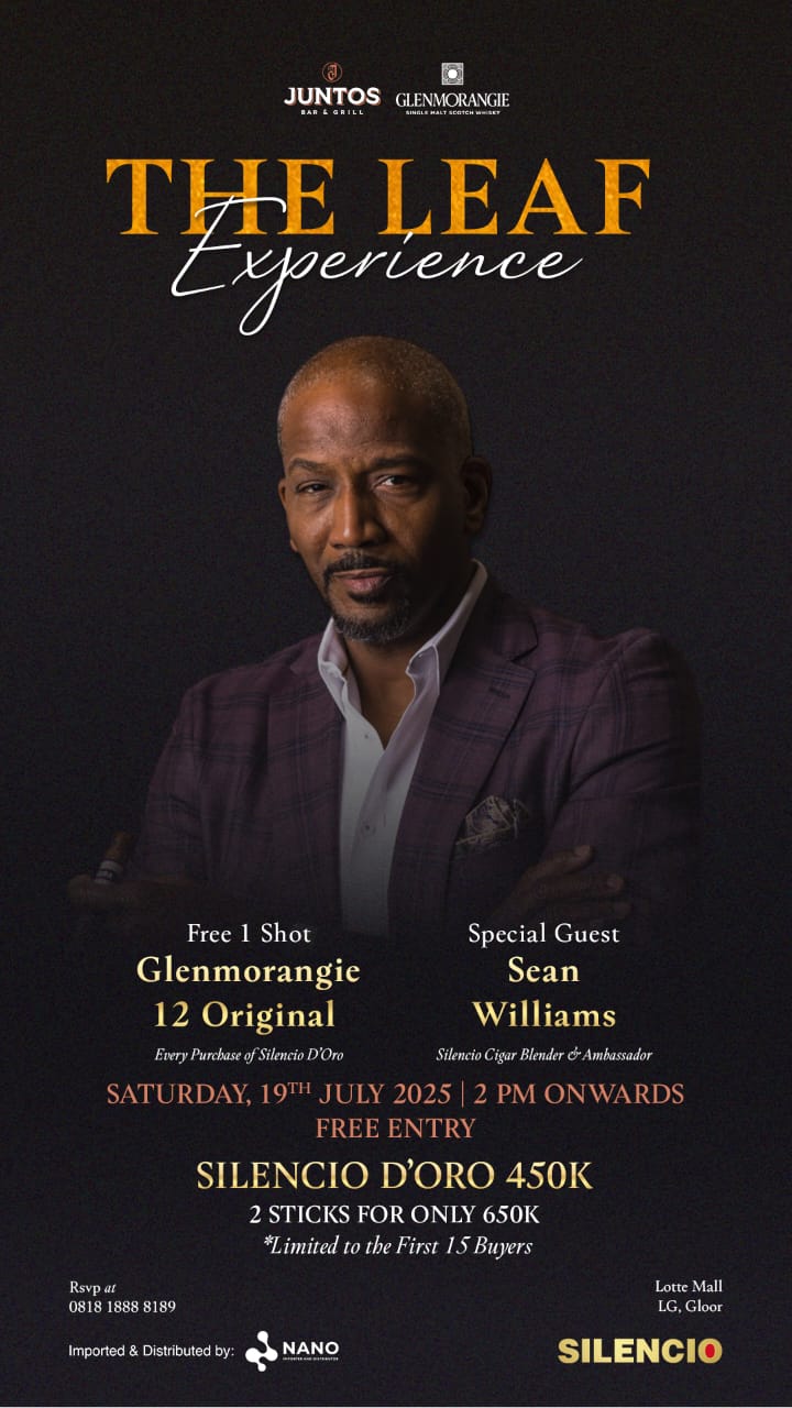 JAKARTA – Para pencinta cerutu dan gaya hidup premium bersiap menikmati acara eksklusif bertajuk “The Leaf Experience”, yang akan digelar pada Sabtu, 19 Juli 2025 mulai pukul 14.00 WIB di Juntos Bar & Grill, Lotte Mart, Jakarta Selatan.
