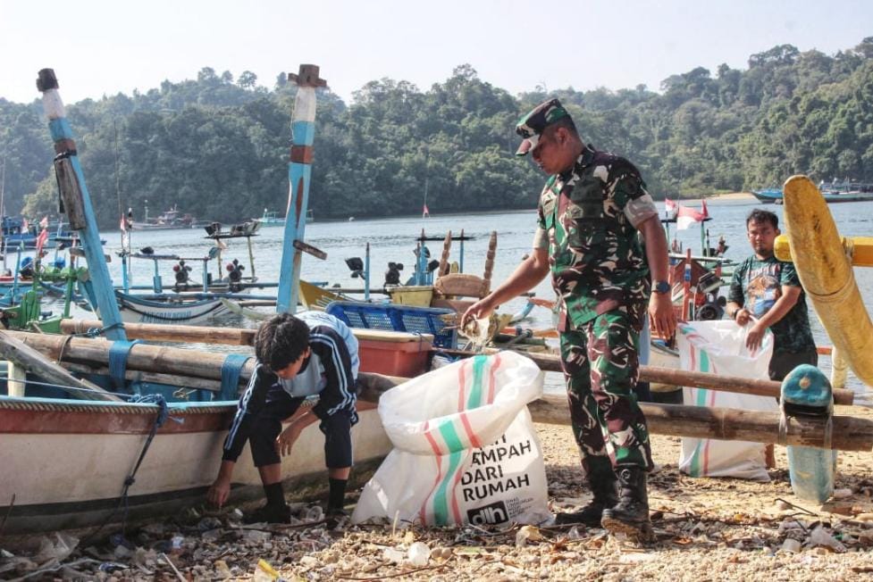 Usai apel, aksi bersih pantai pun digelar. Tidak hanya prajurit, namun juga pelajar, pemuda, tokoh adat, nelayan, hingga organisasi perempuan ikut terlibat. Kehadiran Ibu Danrem, selaku Ketua Persit KCK Koorcab Rem 083 PD V/Brawijaya, menambah nuansa kebersamaan. Ia bahkan ikut mendampingi ibu-ibu nelayan membersihkan area pesisir sambil berbincang hangat.