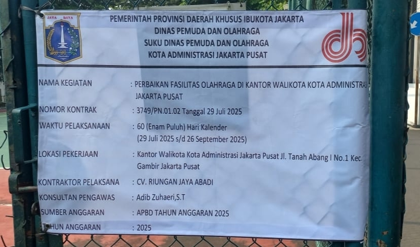 Jakarta — Proyek perbaikan fasilitas olahraga di lingkungan Kantor Wali Kota Administrasi Jakarta Pusat kini menuai sorotan tajam. Dugaan adanya praktik Korupsi, Kolusi, dan Nepotisme (KKN) menyeruak setelah pelaksanaan pekerjaan yang dibiayai dari APBD dengan nilai hampir Rp1,7 miliar itu dinilai tidak sesuai kontrak dan diduga dikerjakan oleh pihak yang bukan pemegang kontrak resmi.