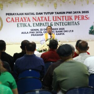 “Tirulah para gembala yang menyaksikan kelahiran bayi Yesus. Mereka mengabarkan fakta yang jauh dari prasangka, praduga, jauh dari narsisme dan tidak ada agenda tersembunyi. Para gembala adalah pembawa kabar sukacita, dan kabar sukacita itu diwartakan secara objektif dan bermanfaat bagi banyak orang serta misinya adalah damai sejahtera,” kata Romo Marthen Djenarut, Pr, dalam khotbah yang disampaikannya dalam acara Natal Bersama PWI Jaya, di Sekretariat PWI Jaya, Jl. Suryopranoto Jakarta, Senin (22/12/2025).