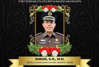 JAKARTA – Kabar duka menyelimuti lingkungan Kejaksaan. Kepala Kejaksaan Negeri Jakarta Timur, Imran, S.H., M.H., meninggal dunia pada Jumat (7/3/2025) sekira pukul 00.45 WIB di RS Primaya, Kota Bekasi.